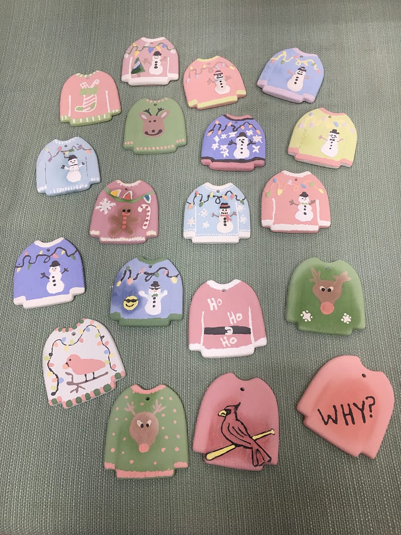 Ugly sweater party at the spot. Lots of fun celebrating the season and painting ugly sweater ornaments