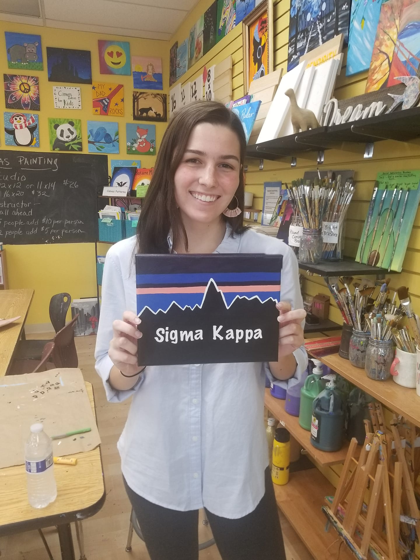 - Paint Canvas (recommended for ages 7+, choose from step-by-step patterns, parental help is advised, $31 for a 12″x12″ canvas, price is all inclusive. $32 for a 11×14 and $38 for a 16×20.